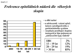 Spektrum nádorů u dospívajících a jejich biologické vlastnosti jsou věkově specifické a významně se liší od spektra nádorů dětí mladších 15 let nebo od nádorů dospělé a starší populace. Epiteliální nádory (karcinomy), typické pro starší věk, tvoří méně než 12% ze všech nádorů u adolescentů. Jejich etiopatogeneze a spektrum patogenetických změn se může s věkem měnit.