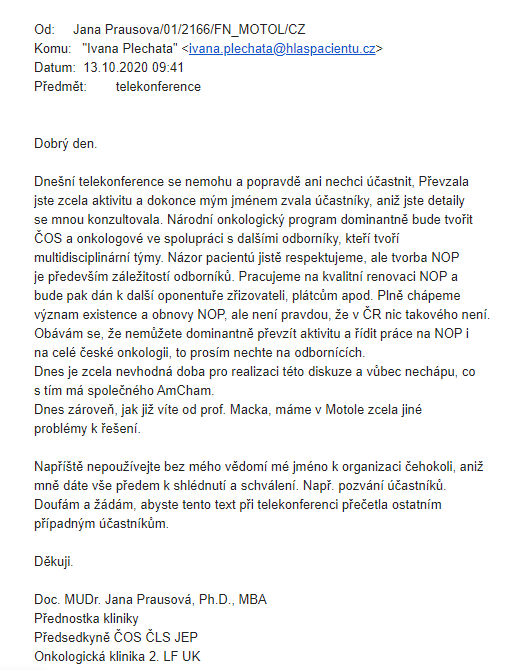 Telekonference 13.10.2020 – dopis Mgr. Ivaně Plechaté od předsedkyně ČOS v příloze.
