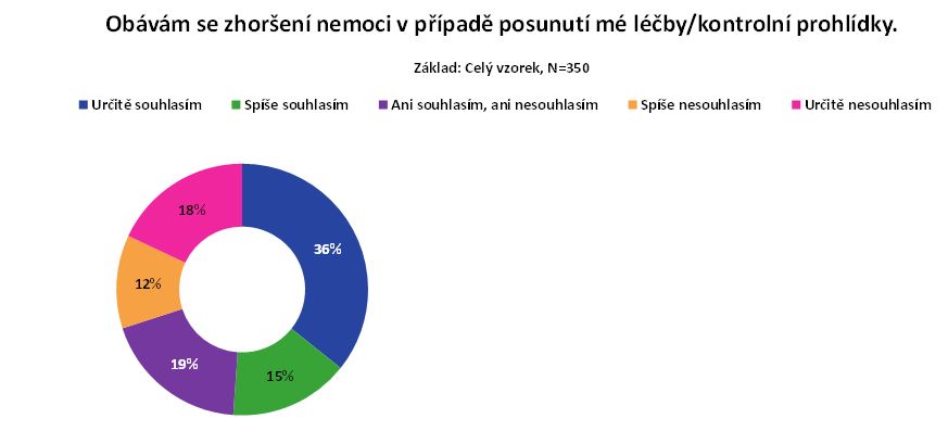 Jak ukazují výsledky průzkumu, který probíhal od dubna do června online, onkologického onemocnění se pacienti báli více než onemocnění virem Covid-19. Jako nejčastější uváděné problémy byly zmiňovány horší dostupnost zdravotní péče (např. léčba, rehabilitace, psychiatrická a psychologická péče, zubní ošetření) a