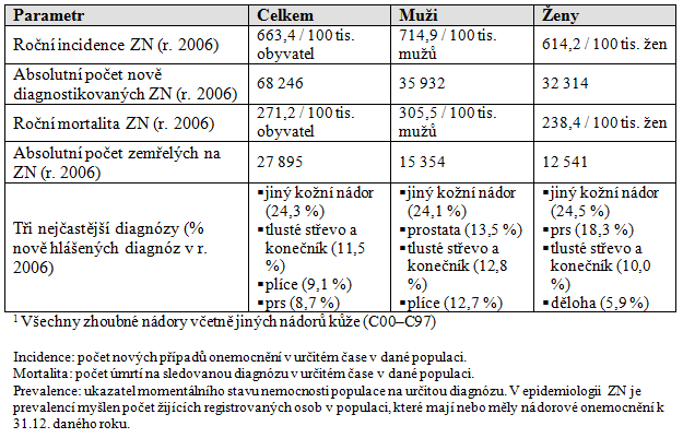 Tabulka 1. Přehled epidemiologie zhoubných nádorů