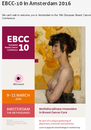 - Přidat do kalendáře: 2015-03-09 00:00:00 2015-03-11 23:59:59 Europe/Prague 10th European Breast Cancer Conference (EBCC10) Amsterdam, Netherlands