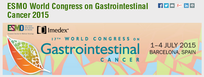 - Přidat do kalendáře: 2015-07-01 00:00:00 2015-07-04 23:59:59 Europe/Prague 17th World Congress on Gastrointestinal Cancer The ESMO World Congress on Gastrointestinal Cancer is the premier global event in the field, encompassing malignancies affecting every component of the gastrointestinal tract and aspects related to the care of patients with gastrointestinal cancer, including screening, diagnosis and the latest management options for common and uncommon tumours. It has been endorsed by leading professional societies and organisations. Barcelona, Spain