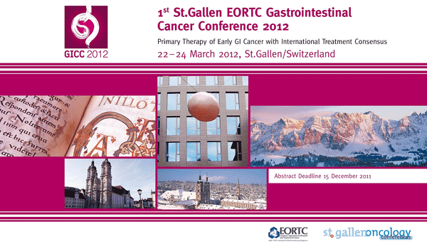 - Přidat do kalendáře: 2012-03-22 00:00:00 2012-03-24 23:59:59 Europe/Prague 1st St.Gallen EORTC Gastrointestinal Cancer Conference V roce 2012 se uskuteční historicky první ročník této konference. Einstein Congress Hotel, St.Gallen, Switzerland