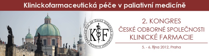 - Přidat do kalendáře: 2012-10-05 00:00:00 2012-10-06 23:59:59 Europe/Prague 2. kongres ČOSKF - Klinickofarmaceutická péče v paliativní medicíně 2. kongres České odborné společnosti klinické farmacie je zaměřen na klinickofarmaceutickou péči v paliativní medicíně, především u onkologických pacientů. Akce je určena pro klinické farmaceuty a lékárníky se zájmem o klinickou farmacii, vítaní jsou i účastníci z řad lékařů. Mezi pozvanými řečníky jsou vedoucí osobnosti české klinické farmacie, paliativní medicíny a onkologie. Praha, hotel Olympik ARTEMIS