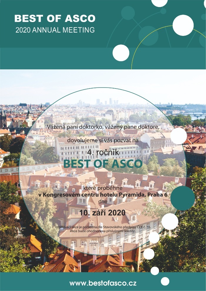 - Přidat do kalendáře: 2020-09-10 00:00:00 2020-09-10 23:59:59 Europe/Prague Best of ASCO Praha 2020 4. ročník odborné akce vycházející z novinek prezentovaných na nejdůležitějším onkologickém kongresu na světě - ASCO 2020. Akce je rozdělena podle jednotlivých indikací a největší část je věnovaná diskuzi na téma aplikace novinek v naší lokální terapeutické praxi. kongresové centrum hotelu Pyramida, Praha 6