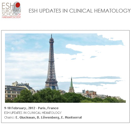 - Přidat do kalendáře: 2012-02-09 00:00:00 2012-02-10 23:59:59 Europe/Prague ESH Updates in Clinical Hematology Hotel Pullman Paris Bercy, Paris, France