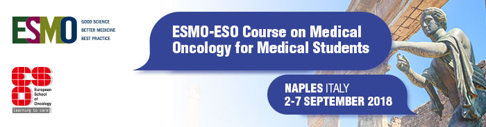 - Přidat do kalendáře: 2018-09-02 00:00:00 2018-09-07 23:59:59 Europe/Prague ESMO-ESO Course on Medical Oncology for Medical Students Naples 2018 Naples, Italy