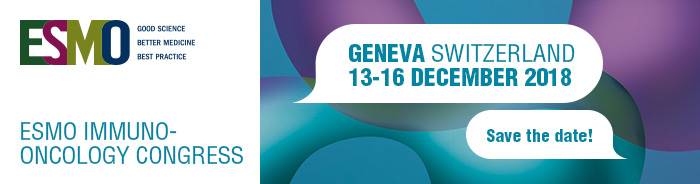 - Přidat do kalendáře: 2018-12-13 00:00:00 2018-12-16 23:59:59 Europe/Prague ESMO Immuno-Oncology Congress 2018 Geneva, Switzerland