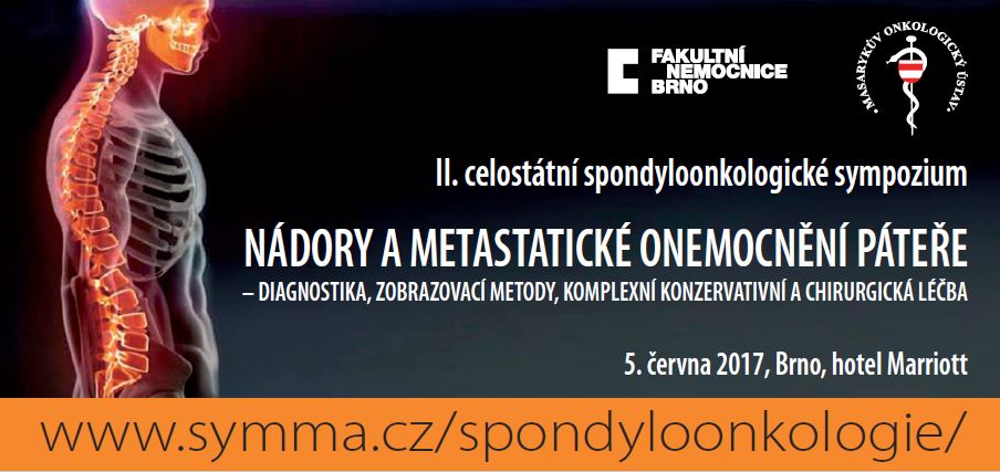 dovolte, abychom Vás jménem programového výboru sympozia pozvali k účasti na II. celostátním spondyloonkologickém sympoziu „Nádory a metastatické onemocnění páteře – diagnostika, zobrazovací metody, komplexní konzervativní a chirurgická léčba“,