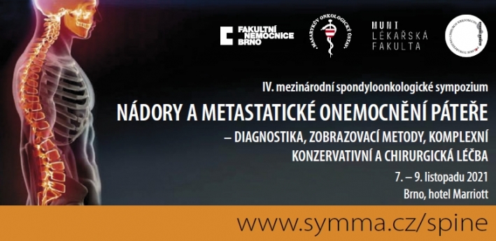 4. spondyloonkologické sympozium s názvem "Nádory a metastatické onemocnění páteře – diagnostika, zobrazovací metody, komplexní konzervativní a chirurgická léčba“ se koná tradičně v Brně v konferenčních prostorách hotelu Marriott.