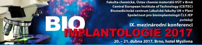 Společnost pro bioimplantologii ČLS JEP, Fakulta chemická, Ústav chemie materiálů VUT v Brně, CEITEC a Biomedicínské centrum Lékařské fakulty v Plzni vás zvou na mezinárodní konferenci.