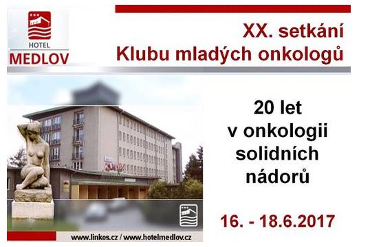 - Přidat do kalendáře: 2017-06-16 00:00:00 2017-06-18 23:59:59 Europe/Prague Jubilejní XX. setkání Klubu mladých onkologů na téma "20 let v onkologii solidních nádorů" . Letošní ročník bude vzhledem k jubileu zaměřen na pokroky, kterých bylo na poli onkologie a souvisejících oborů dosaženo za posledních 20 let fungování našeho setkání. hotel Medlov, Fryšava pod Žákovou horou