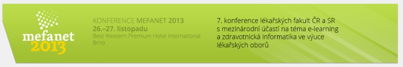 - Přidat do kalendáře: 2013-11-26 00:00:00 2013-11-27 23:59:59 Europe/Prague MEFANET 2013 V pořadí již sedmá konference všech lékařských fakult České republiky a Slovenské republiky s mezinárodní účastí. V letošním programu najdete kromě tradičních přednáškových bloků zaměřených na technické, metodické a pedagogické aspekty elektronické podpory výuky v lékařských a zdravotnických oborech, také ucelené sekce s tématy zaměřenými na elektronickou podporu výuky v biofyzice a lékařské informatice. Zvaní zahraniční hosté představí oblast související zejména s elektronickým testováním a ověřováním znalostí. hotel International v Brně
