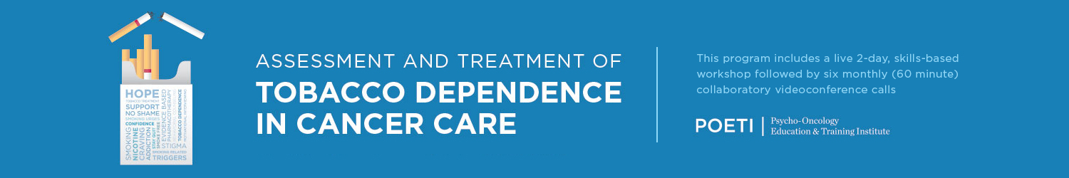 This innovative program includes a 2-day, skills-based workshop to be held virtually from Memorial Sloan Kettering Cancer Center, followed by 6 monthly (60 minute) collaboratory videoconference calls providing additional opportunities for implementation mentorship and coaching. The goal of this training is to change the standard of care for treatment of cancer patients that are tobacco-dependent by supporting