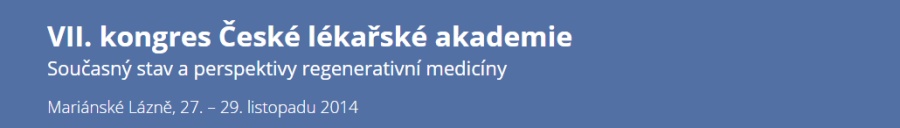 - Přidat do kalendáře: 2014-11-27 00:00:00 2014-11-29 23:59:59 Europe/Prague VII. kongres České lékařské akademie: Současný stav a perspektivy regenerativní medicíny Česká lékařská akademie ve spolupráci s předními odborníky z různých společností a medicínských oborů si Vás dovolují srdečně pozvat na VII. kongres, který se bude konat 27. - 29. listopadu 2014 v konferenčním centru Společenského domu v Mariánských Lázních. Mariánské Lázně, konferenční centrum Společenského domu