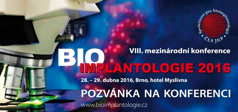 - Přidat do kalendáře: 2016-04-28 00:00:00 2016-04-29 23:59:59 Europe/Prague VIII. mezinárodní konference „Bioimplantologie 2016“ Hotel Myslivna, Brno