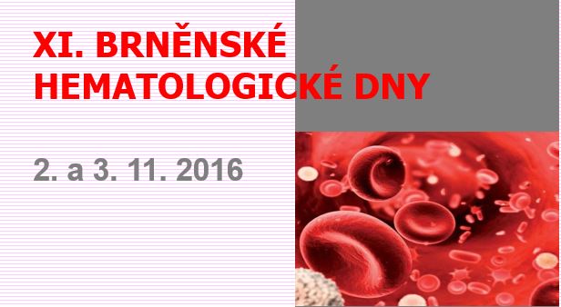 - Přidat do kalendáře: 2016-11-02 00:00:00 2016-11-03 23:59:59 Europe/Prague XI. Brněnské hematologické dny 2. 11. 2016: Cyklus „Trombóza a hemostáza – mezioborový problém“ Koagulopatie jako předmět odborné konzultace Garant programu: prof. MUDr. Miroslav Penka, CSc. 3. 11. 2016: Chronická myeloidní leukemie (CML) a Ph- myeloproliferativní neoplázie (MPN) Garant programu: prof. MUDr. Jiří Mayer, CSc. BW Hotel International, Husova 16, Brno