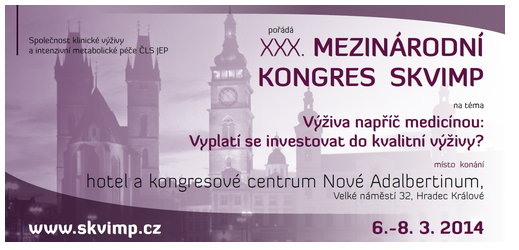 - Přidat do kalendáře: 2014-03-06 00:00:00 2014-03-08 23:59:59 Europe/Prague XXX. mezinárodní kongres SKVIMP Pořádá Společnost klinické výživy a intenzivní metabolické péče ČLS JEP. Hradec Králové
