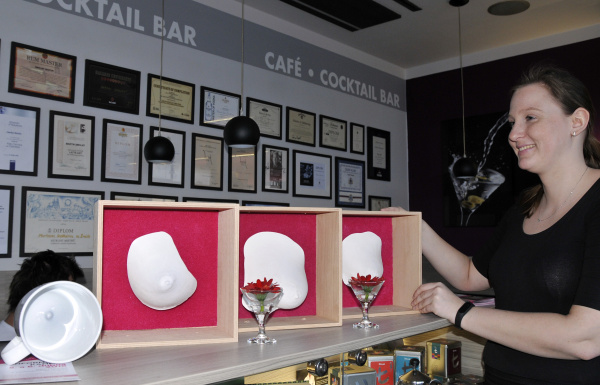 Sledovat prsa ale bylo možné i v pardubických kavárnách. Kampaně se jich zúčastnilo celkem osm. V interiérech byla k vidění výstava #prsatogo, tedy sádrové odlitky ženských ňader, jejichž autorem je designér Matyáš Fuchs. V kavárnách se navíc daly zakoupit i tzv. prsní hrnky. „Výtěžek z jejich prodeje jde na konto Aliance žen s rakovinou prsu a jejího projektu Bellis, mladé ženy s rakovinou prsu. Z obou částí charitativního projektu se za jeden týden podařilo v Pardubicích vybrat téměř 20 000 korun,“ upřesňují organizátorky po té, co se zjistil konečný stav charitativního konta.