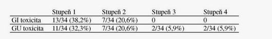 Tab. 2 Incidence akutní GI a GU toxicity u pacientů léčených IMRT.