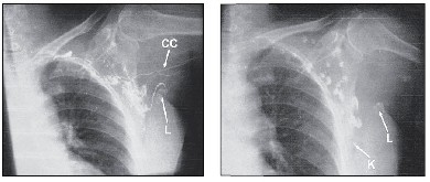 Při přímé lymfografii HK se na těchto snímcích zobrazují jako první přívodné lymfatické kolektory, následně se zobrazují laterálně uložené uzliny v axile, poté uzliny v centrální části axily a následně uzliny přilehlé k hrudní stěně a uzliny ve vrcholu axily.