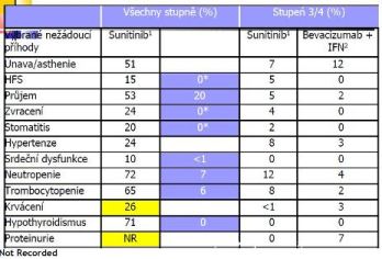 Bevacizumab + IFN a sunitinib mají odlišné profily bezpečnosti
