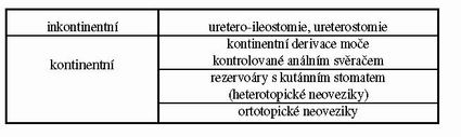 Rozdělení operací zajišťujících derivaci moče můžeme provádět podle různých kritérií. K jednoduchým, ale velmi přehledným patří následující: