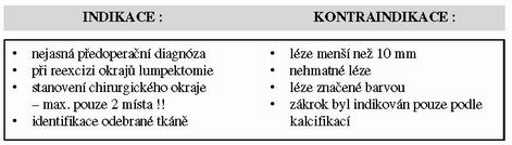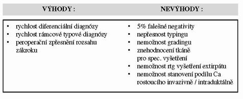 Tabulka 3.: Důvody pro peroperační histologické a cytologické vyšetření