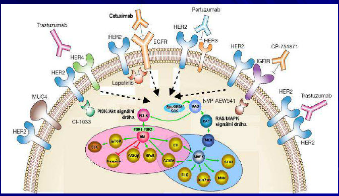 - Cílená léčba se soustřeďuje na určité receptory v nádorové buňce