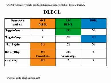 navrženo rozdělení podskupin DLBCL (Obr. 4). Sledovat časté