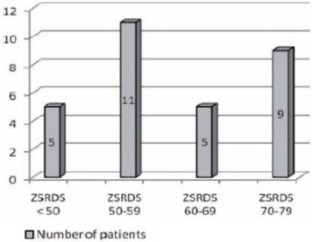- The statistical evaluation does not present statistically significant dependence of ZSRDS on smoking abuse, on marital status symptoms, on age, on number of associated diseases and on type of palliative cancer care.