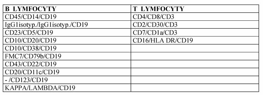 monoklonálních protilátek (tab. 1), které umožňují detekci