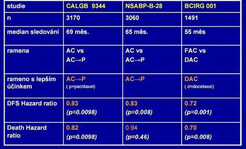 Srovnání výsledků adjuvantních, statisticky významných studií s taxany