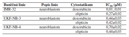 Tabulka 1. Cytotoxicita elipticinu a doxorubicinu