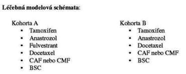 Pro náš model jsme použili algoritmus léčby hormonálně senzitivního karcinomu prsu postmenopauzálních nemocných, u nichž jsme sledovali vliv chemoterapie FAC či CMF a přidání fulvestrantu (kohorta A) do léčebného algoritmu. Měřili jsme délku přežití, kvalitu života, cenu QALY a navýšení nákladů pro jednoho nemocného za celou intervenci.