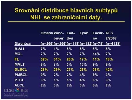 hlásit lymfomy i z menších pracovišť, aby konečná analýza