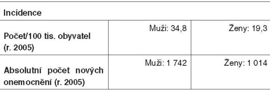 Tabulka 1. Epidemiologie ZN ledviny mimo pánvičku (C64) v