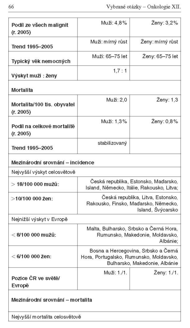 Rostoucí trend incidence se netýká pouze české populace, ale lze jej pozorovat u většiny států severní Ameriky a Evropy s typickým ročním nárůstem 3–5%.