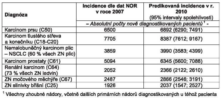 predikce epidemiologických charakteristik nádorových onemocnění.