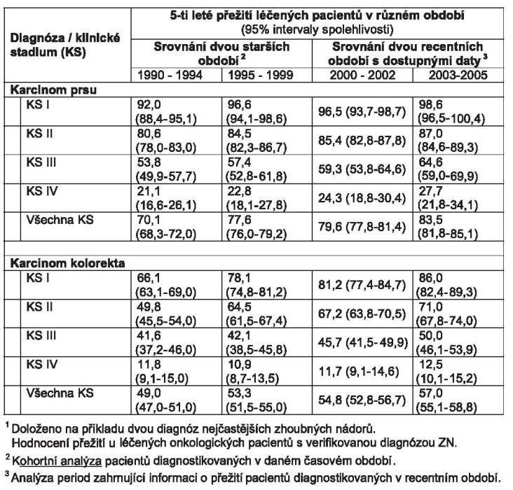 Tabulka 5. Referenční hodnoty pětiletého relativního přežití