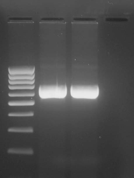 30 s, 72°C-1 min), 72°C – 1 min. Složení reakce podle doporučení výrobce. Produkt PCR reakce byl zviditelněn pomocí gelové elektroforézy na 2% agarózovém gelu (Obr. 2.) Extrakce produktu z gelu a jeho přečištění bylo provedeno pomocí QIAGEN QIAquick Gel Extraction Kitu (Bio-Consult Laboratories, spol. s r. o., Praha, ČR).