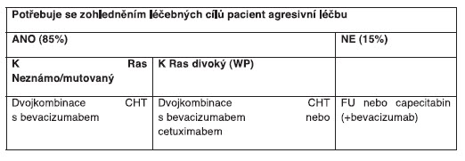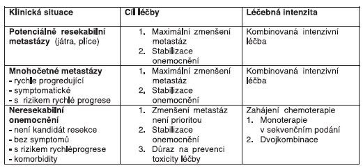 Tabulka 1: Strategie léčby metastatického kolorektálního karcinomu (ESMO 2010)