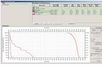 Obr.4: Dose volume histogram (DVH) zobrazuje