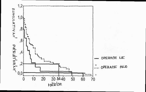 skupině neoperovaných 0%. Rozdíl mezi skupinou operovaných a