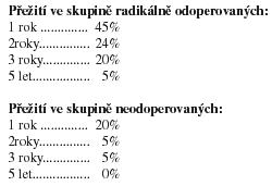 s GM, hodnoceno ve skupině nemocných po radikální operaci a ve