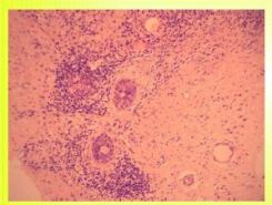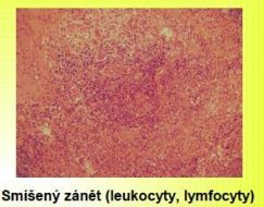 mnohojaderných buněk, infiltrace leukocyty, plazmocyty a lymfocyty