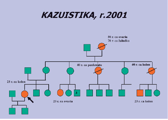 K vyhledávání rodin s vysokým rizikem nádorového onemocnění je nezbytný aktivní přístup, zohlednění rodinné anamnézy (orgánové postižení, věk výskytu, metachronní či synchronní tumory, histologická specifikace aj.).