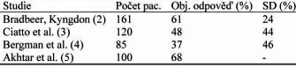 Tab. 1: Vybrané studie fáze II používající tamoxifen v iniciální léčbě lokálně pokročilého karcinomu prsu.