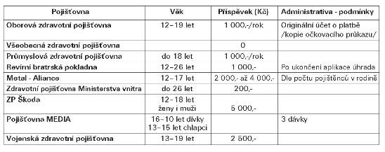 Tab. Úhrada vakcinace proti HPV infekci zdravotními