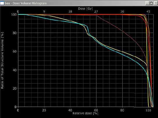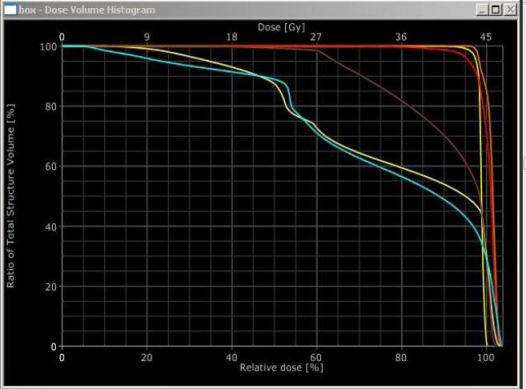 27-35Gy (nižší ozářené objemy pro box průměrně o 7,2%V)